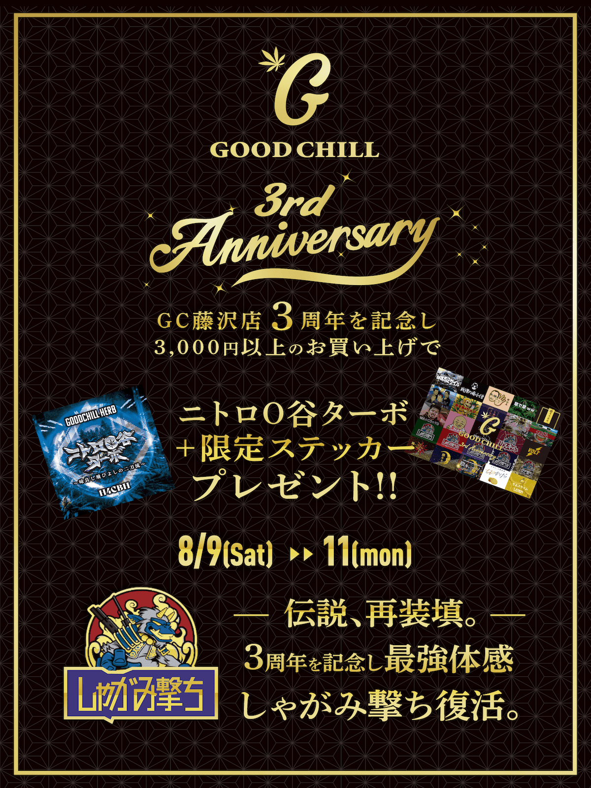 そんな皆様の想いに支えられ、GOODCHILLはおかげさまで3周年。
