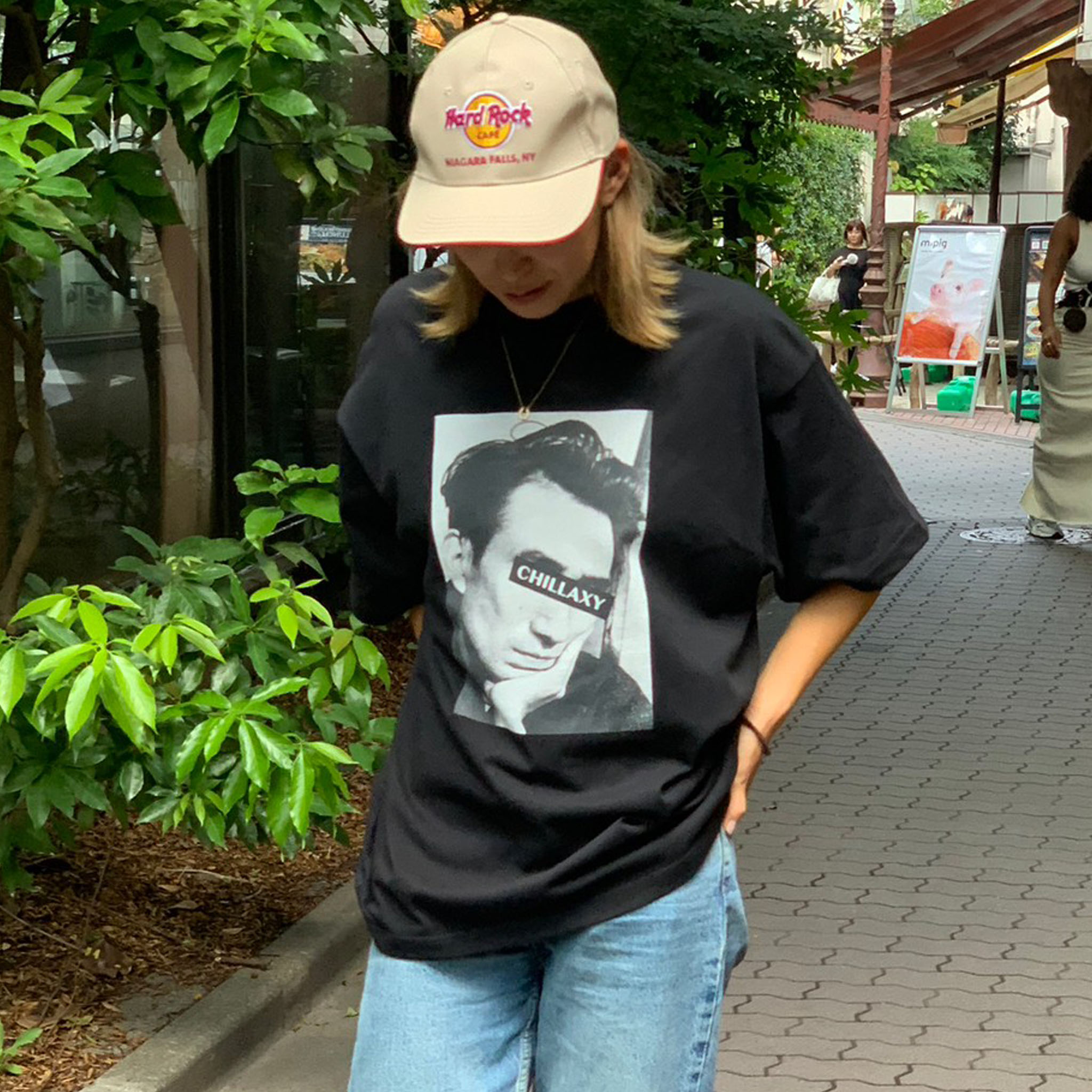 独特の哲学的な視点や心の葛藤を描く名作を数多く残してきた20世紀を代表する日本の文学作家の吸い込まれるような深い眼差しにCHILLAXYボックスロゴをプリント。