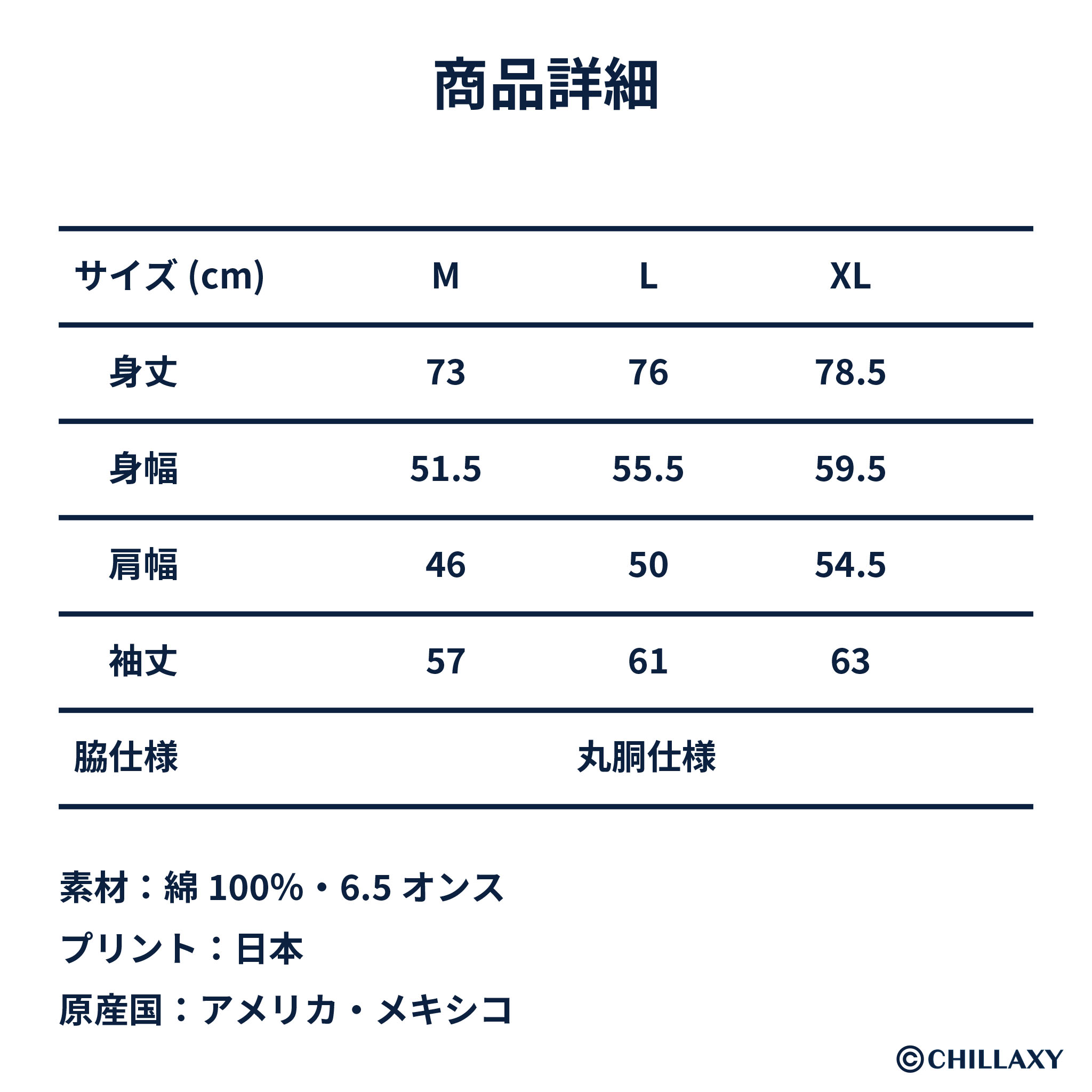 ・XL:身丈78.5、身幅59.5、肩幅54.5、袖丈63