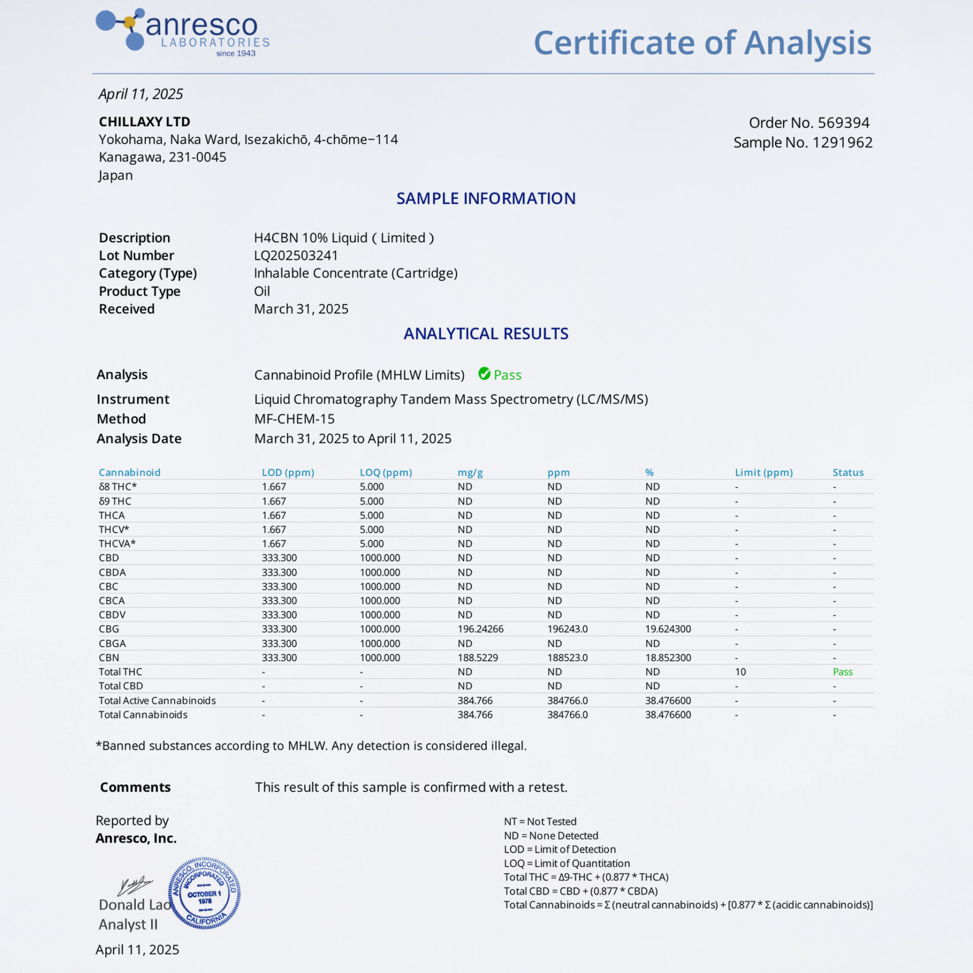 本品は数量限定で配合されたフルカンナビノイドリキッドです。リキッドは、複数のカンナビノイドとその他、植物由来テルペンを使用したチラクシーのハイエンドブレンドです。オリジナル配合による本物の香りをお楽しみいただけます。本品を使用するには、別売りの510規格のベイプバッテリーが必要です。