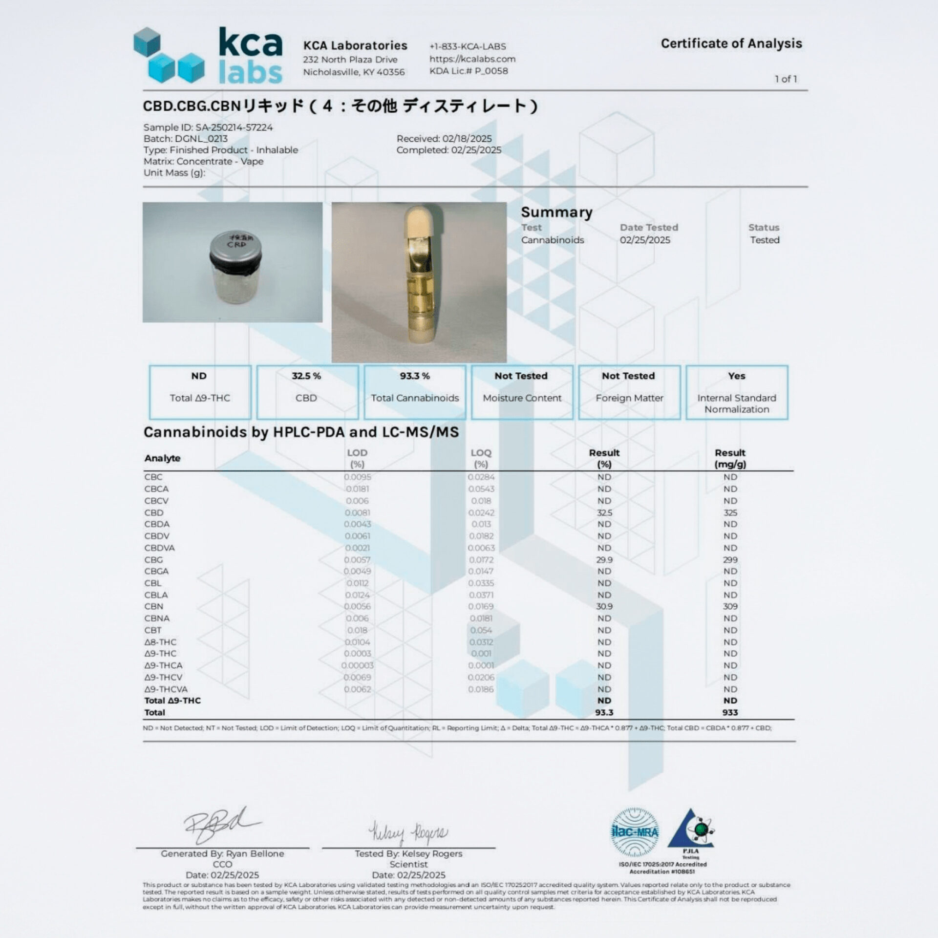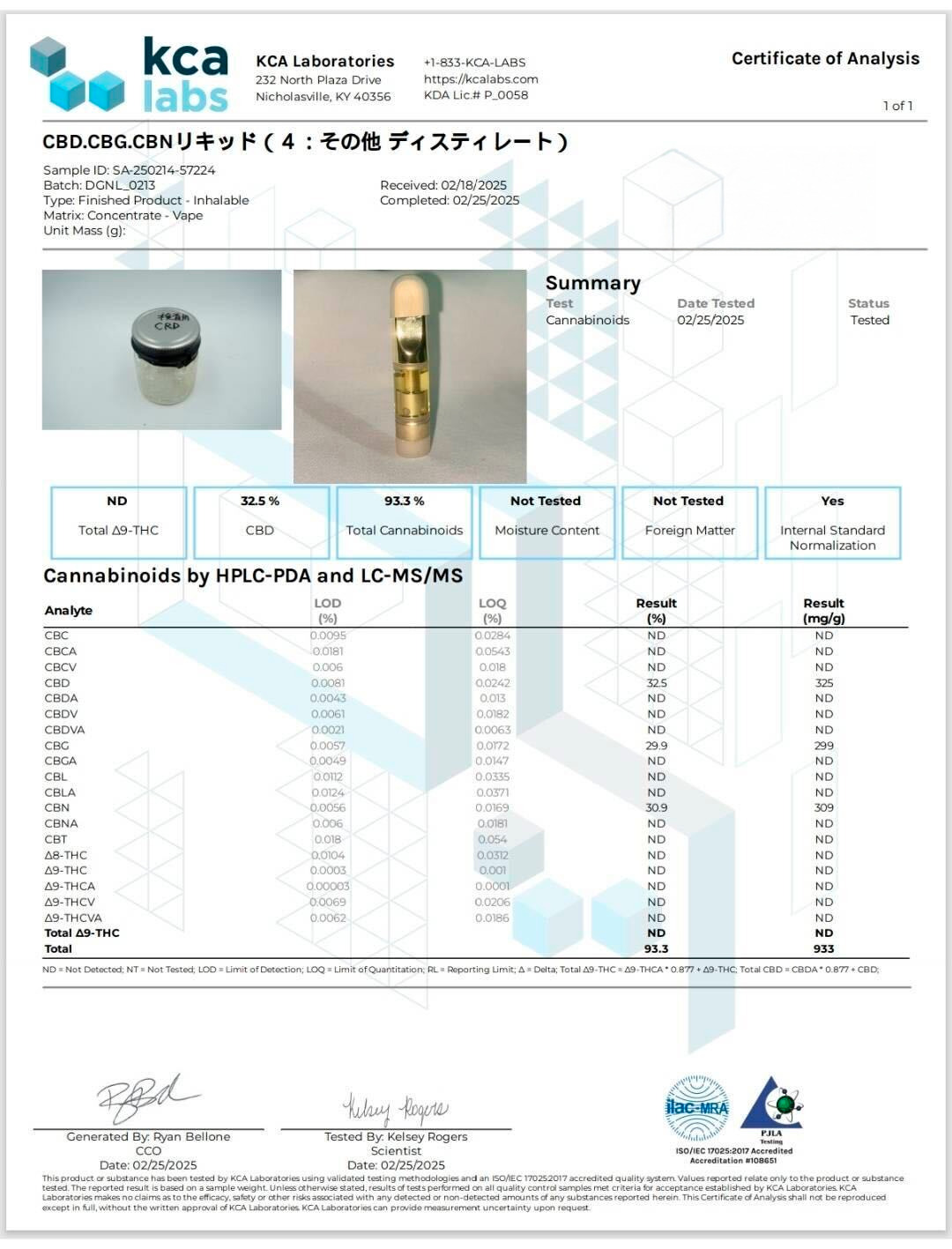 ・カンナビノイド濃度 :CBD 30%,CBG 30%,CBN 30%,Terpene 10%(OG)