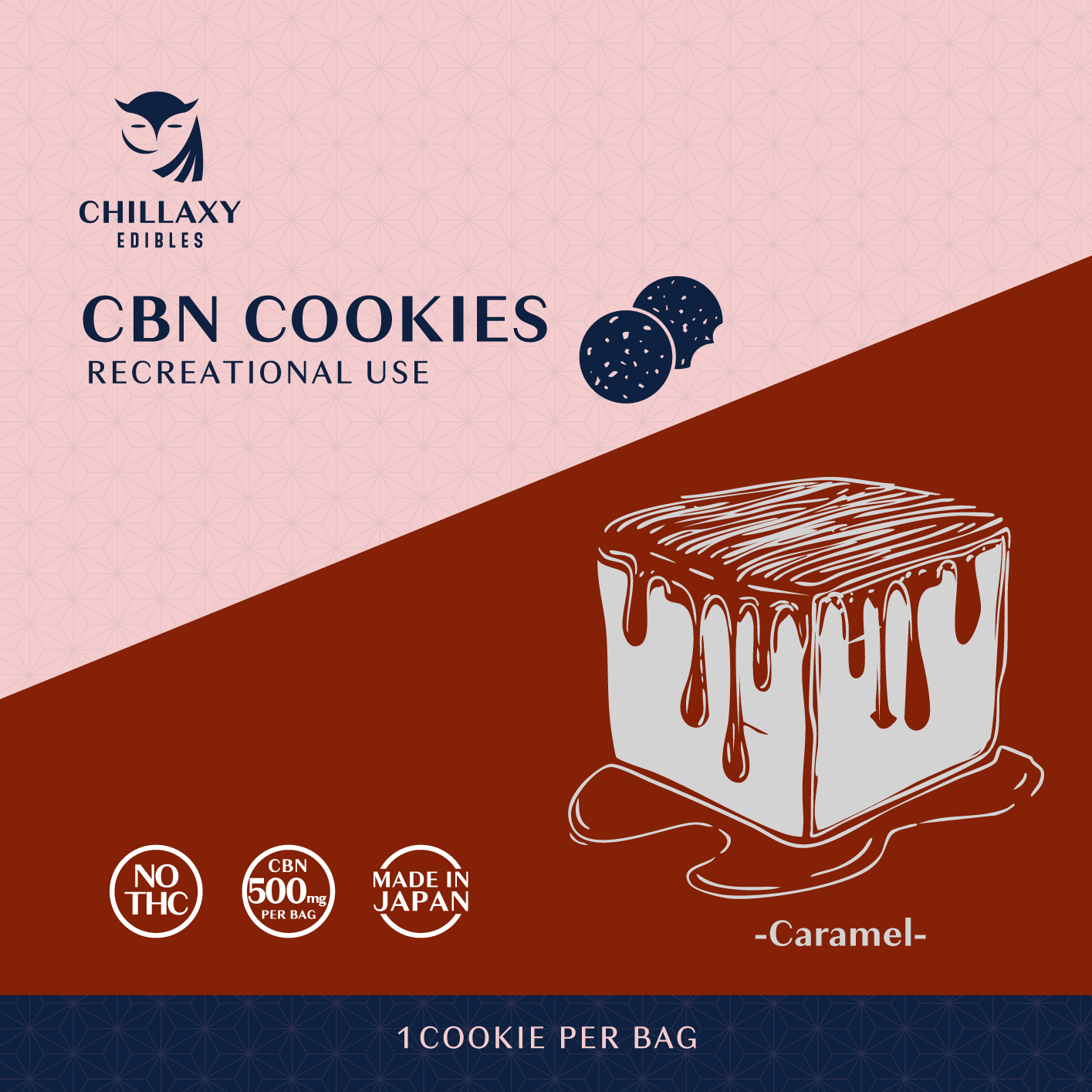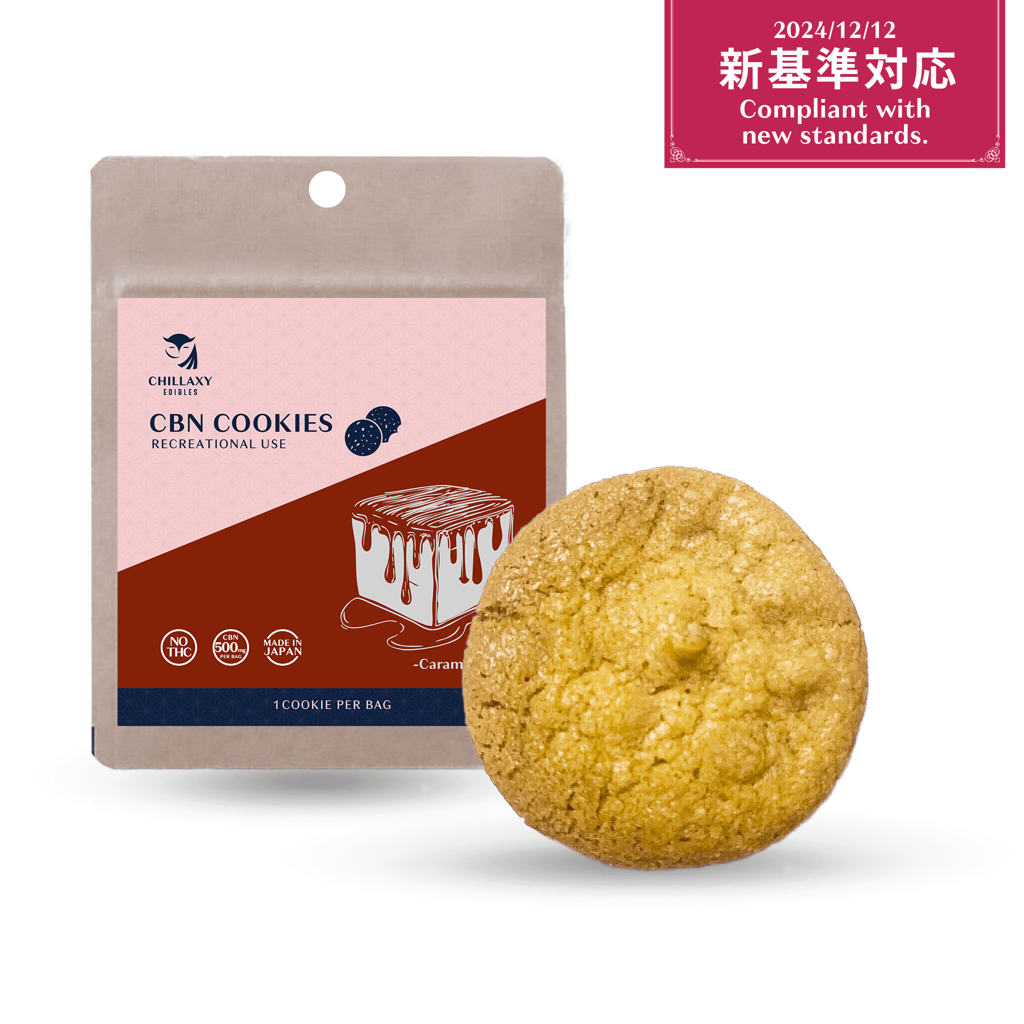 クッキー1枚にCBN 420mgを配合した高濃度CBNクッキーです。キャラメルの絶妙な甘さと豊かなコクをお楽しみいただけます。高濃度CBNと食べごたえのあるボリュームのため、数回に分けてお楽しみいただけます。半枚食べると心地よいまったり感を得ることができるレクリエーション性があります。