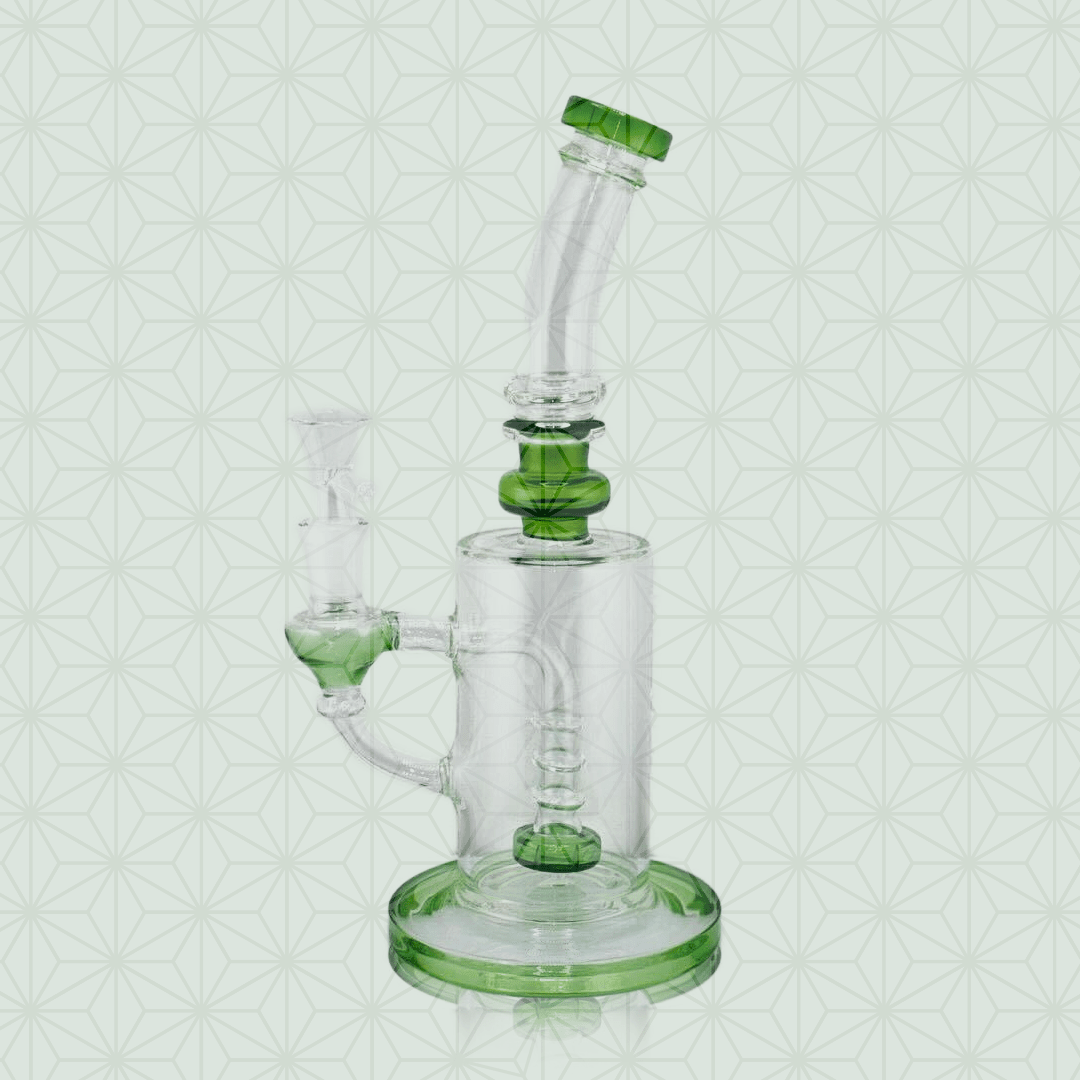 洗練されたデザインと機能性を重視したガラスボングです。美しい緑色のガラスは、シンプルながらもスタイリッシュで、どんなインテリアにも映えるデザインとなっています。また、リサイクラー構造により、煙を何度も水で濾過することで、非常に丁寧でクリーンな喫煙体験を提供します。リサイクラー機能は、吸い込む煙を一度ボング内で循環させる仕組みで、煙がさらに冷却され、喉や肺への負担を大幅に軽減します。その結果、より純粋で風味豊かな煙を楽しむことができます。