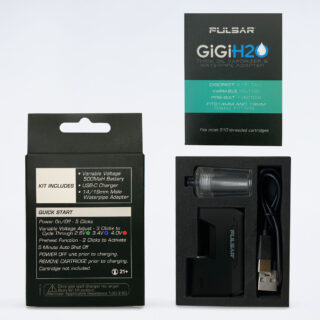 GiGi H2Oは、ボングで使用可能なオート型510規格バッテリーです。ボングを使用せず、通常の510規格バッテリーとしてもお使いいただけます。軽量でコンパクトサイズのため、持ち運びにも便利です。プレヒート機能搭載で、ワックス用アトマイザーにも対応しています。