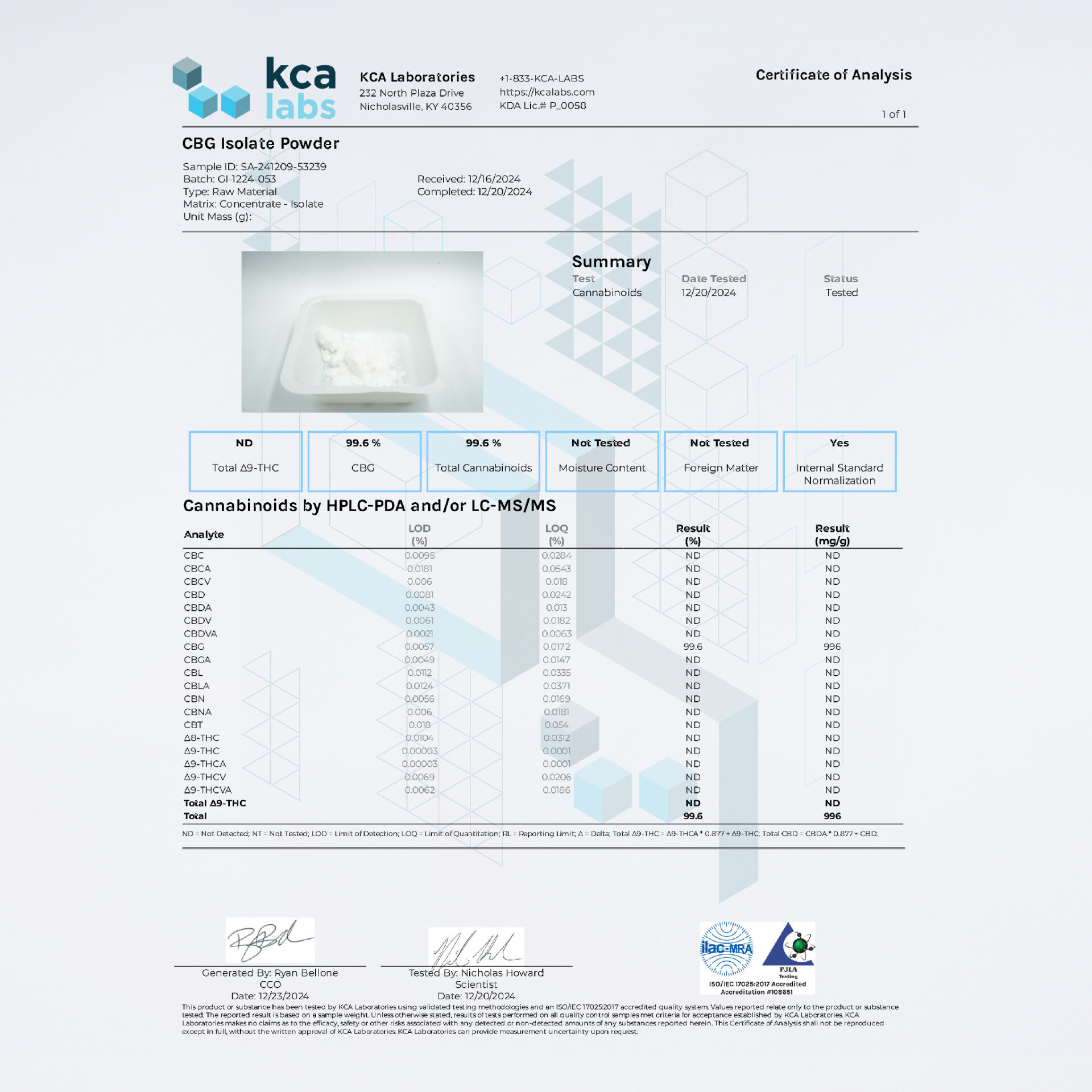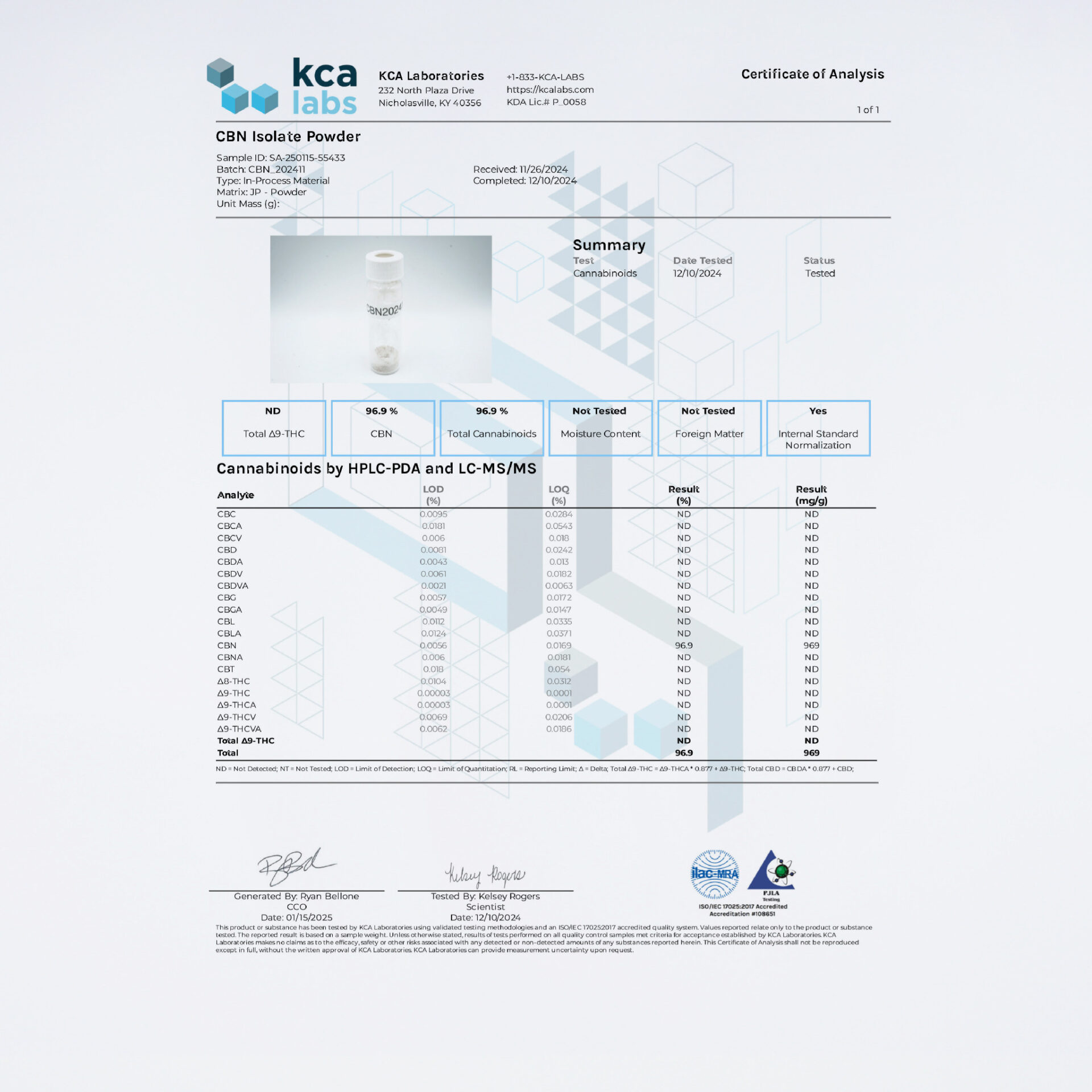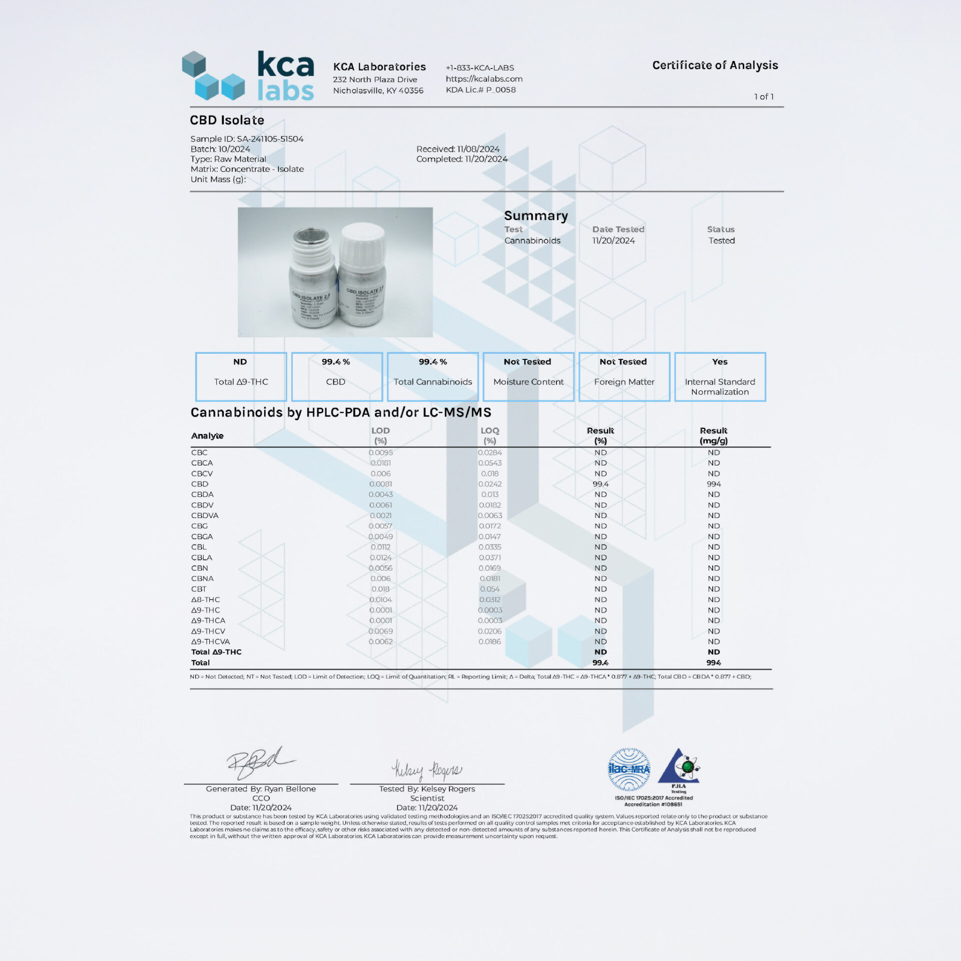 米国産CBDアイソレートです。CBDアイソレートはパウダー状の無味無臭の固体結晶で、汎用性が高いCBD原料となっております。CBNやCBG、CBCなどの他のカンナビノイドと合わせて摂取することで、相乗効果が生まれるといわれています。THC未検出の原料なので、安心安全にご利用頂けます。本品は、カンナビノイドの知識をお持ちの事業者向けの商品のため、一般消費者の方のご購入・ご使用はお控えください。